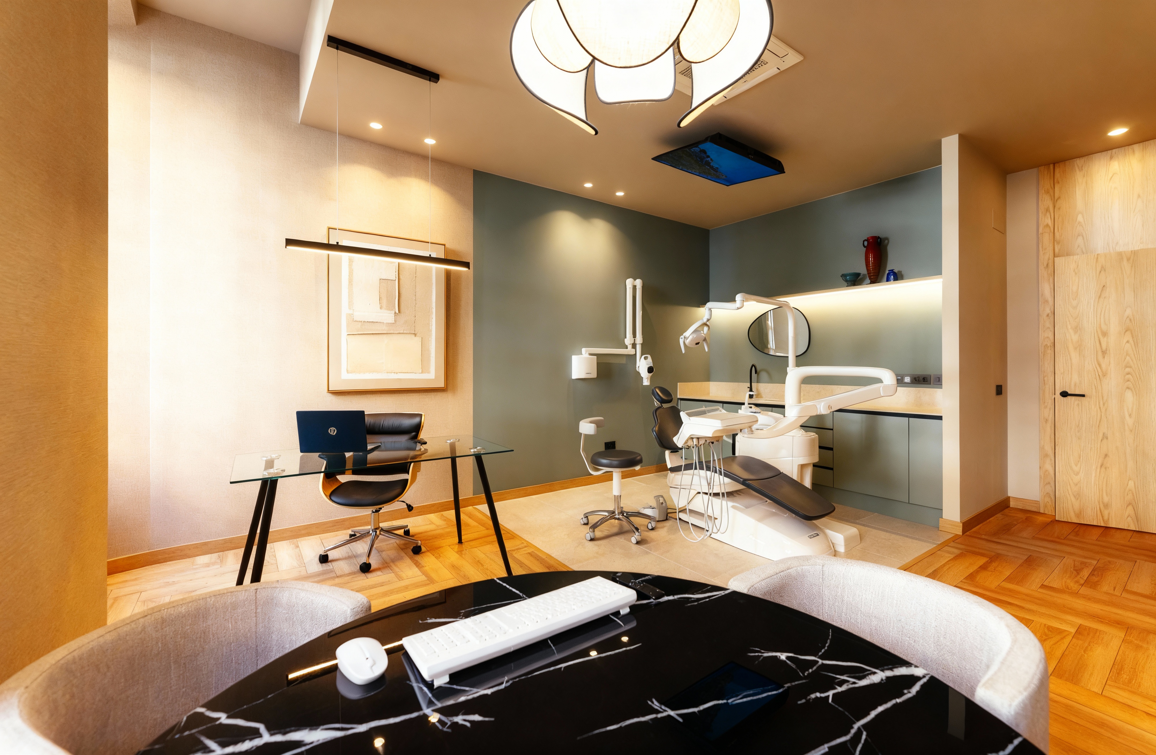 Hemos creado una clínica cálida, moderna y sin los colores fríos ni el ambiente tradicional que suelen asociarse a un dentista.